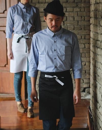 前面中央にスリットが入ったベーシックラインのエプロンです。 ホワイトとブラックの2面の腰ひもでポイントを加えました。 ポケットの右端にボールペン差しを仕立てました。 紐は両面仕様で、ホワイトとブラックでポイントを加えました。 ポケットの右端にボールペン差しがあります。 右上のロゴは実際には入りません。 ブランドロゴ製作を希望の場合には事前にお問い合わせください。 ※ 本製品は受注製作の為10枚以上のご注文のみ承ります。 (製作期間は約15日所要します。) |