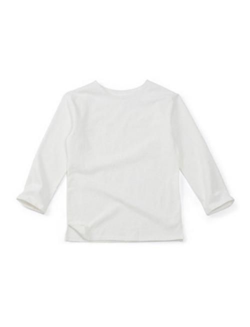 7,950円(税込)コットン100%コーマ糸を織り タンブラー加工した生地のボートネック8分袖Tシャツ -