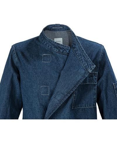 プレミアムウォッシングデニムを使用したMAGNETIC hidden denim chef coat です。 衣類専用特殊防水ママグネットボタンを使用し着脱しやすいプレミアムシェフウェアです。 厨房で着用するのに申し分のない14番糸、適度な厚みのリジッドデニムにバイオウォッシング加工で上品なミディアムトーンを表現し生地に高縮糸スパンが混ざっていて伸縮性にも優れ着用感も良いです。 首後ろ部分にスナップボタンの輪を仕立てエプロンのストラップを固定できます。 エプロンと首の擦れを防止できるようスマートな機能を加えました。 全体的にヴィンテージなヨーロピアンシェフウェアを思わせる製品です。 通気性はもちろんのこと、洗濯による型崩れに強く、 シワの寄りづらい商品です。 ボディフロントにペン挿しディテールを加えより楽な収納機能とユニークなデザインを演出し デザインと機能性を高めたプレミアム商品です。 マグネットボタンは特殊防水コーティング処理を施し洗濯後も磁力が落ちません。 |