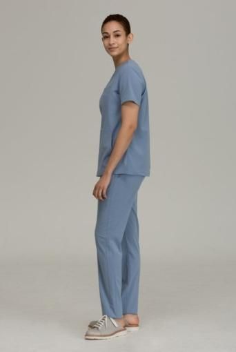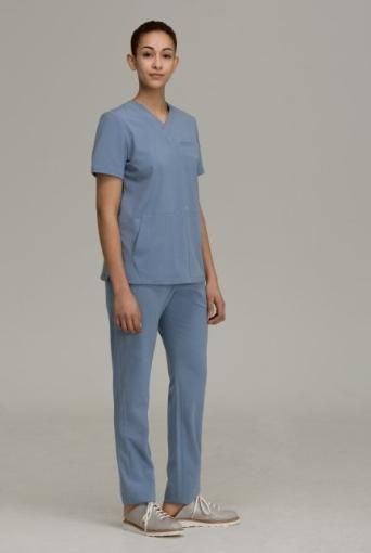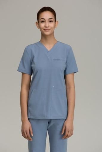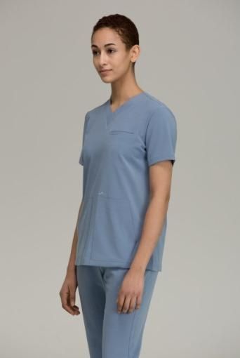 Vネック フロント3ポケットスクラブ レディーストップス Ceil Blue